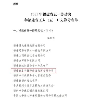 喜报!福建水投集团荣获2021年五一劳动奖状