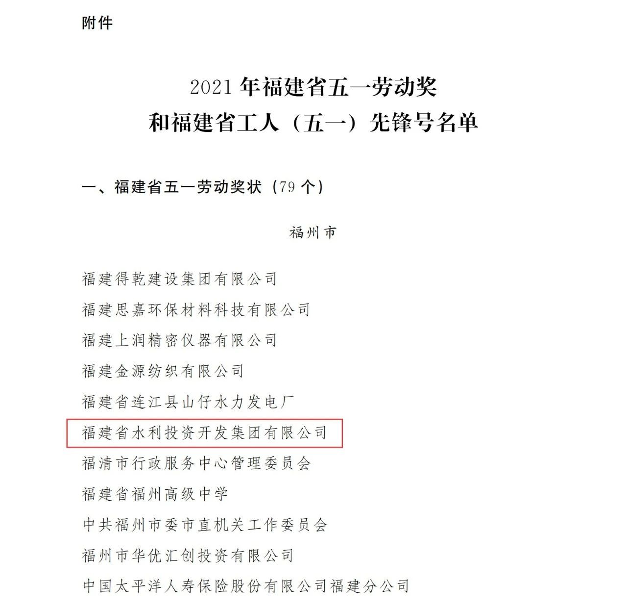 喜报!福建水投集团荣获2021年五一劳动奖状
